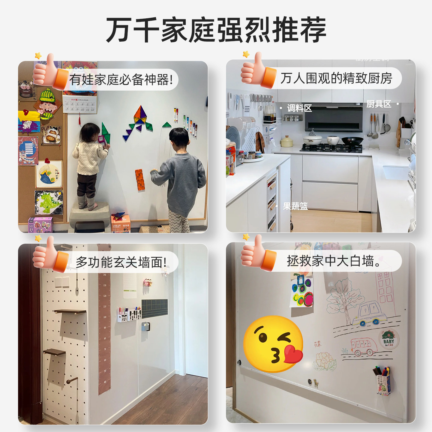 磁吸珐琅白板墙贴墙面冰箱贴展示板厨房家用性磁铁哑光磁力金属板免打孔照片背景板可擦写字小黑板磁吸板定制