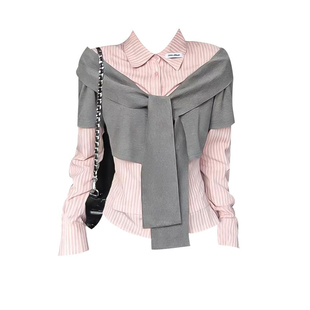 为您提供商品韩系真两件衬衫 女早春miu系粉色衬衣学院风修身 上衣 粉灰撞色的详细介绍,