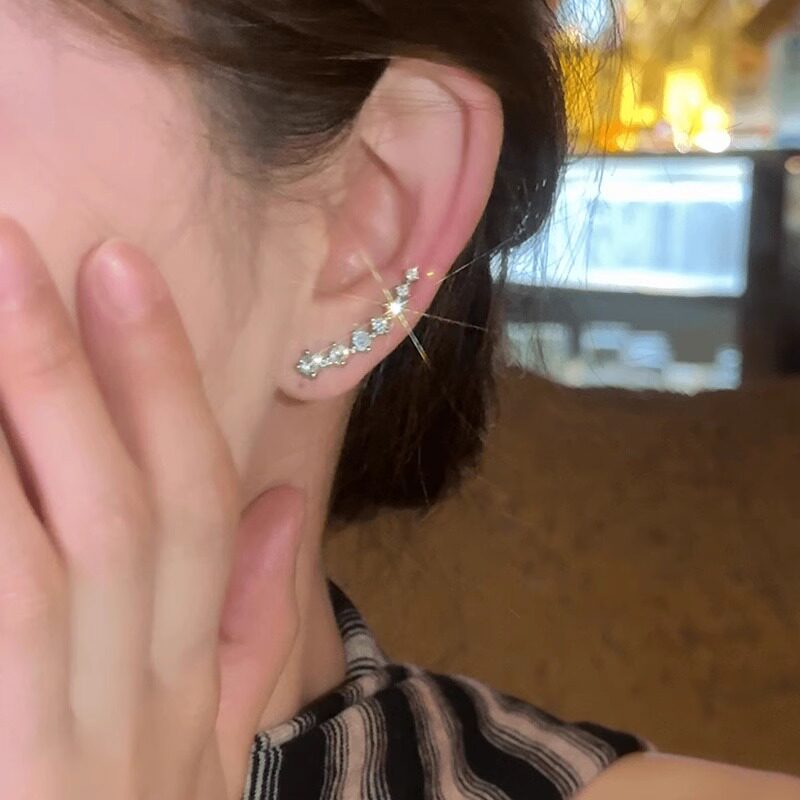 爆款 闪钻耳扣小众设计弧形耳钉耳饰 锆石耳环女2025新款 微镶一排式