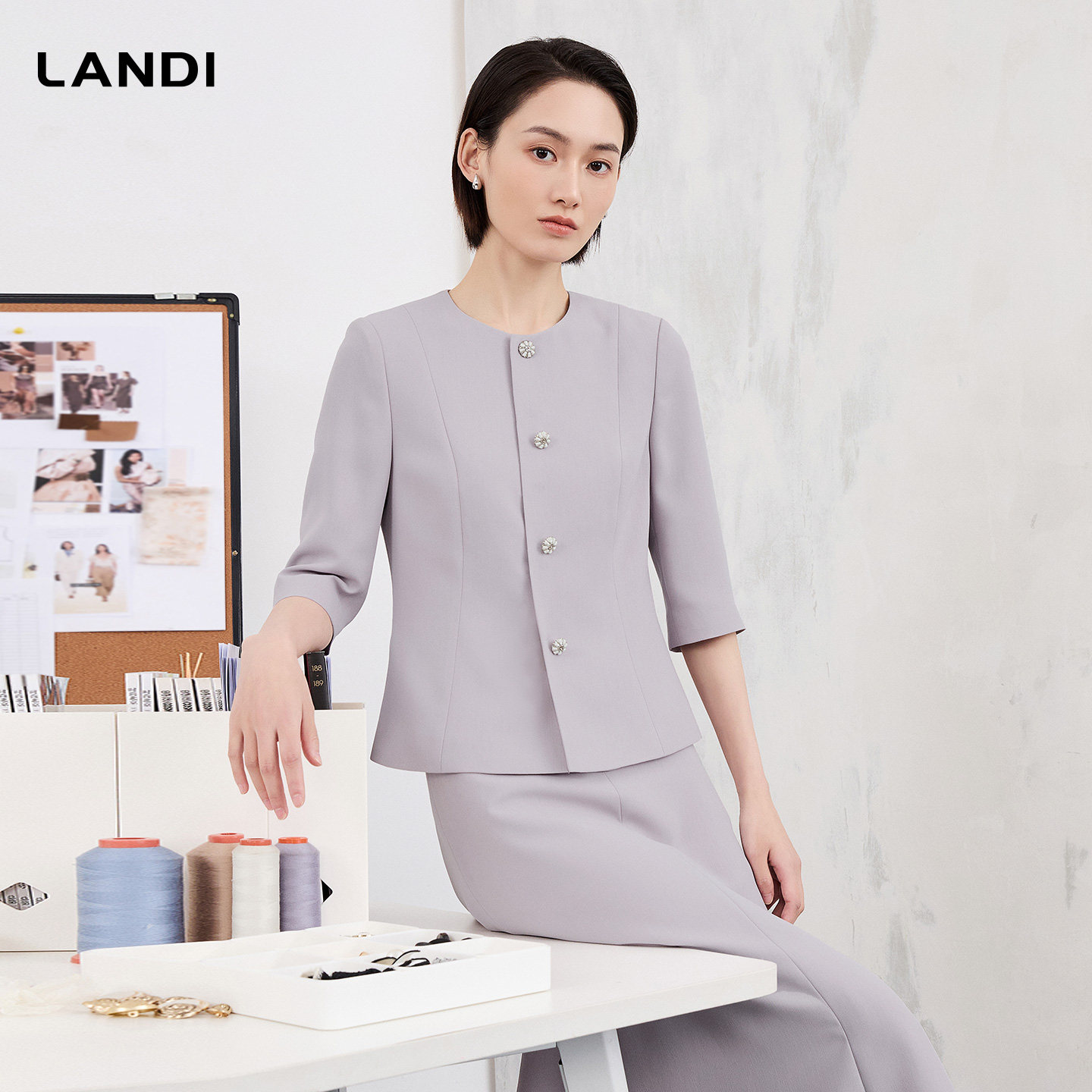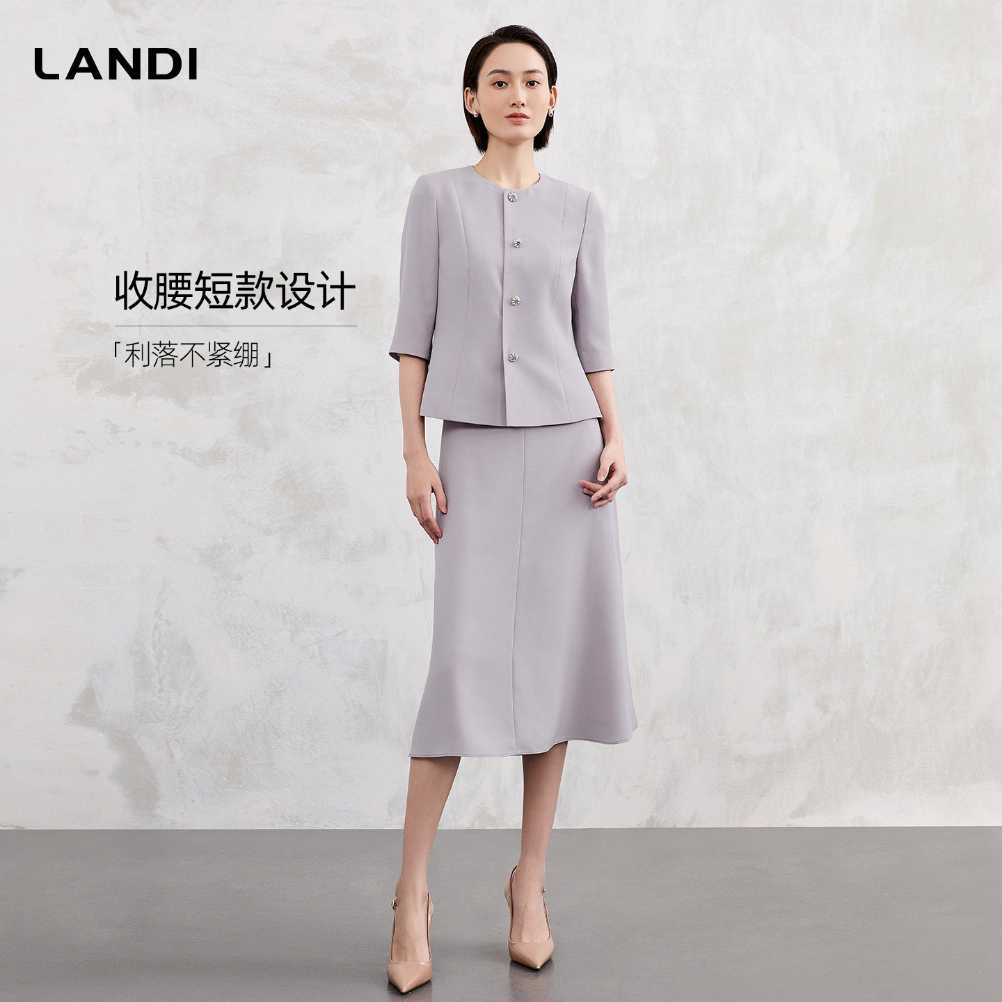 为您提供商品LANDI烟紫色圆领七分袖 西装 短外套女套裙2026春夏新品 优雅通勤的详细介绍,