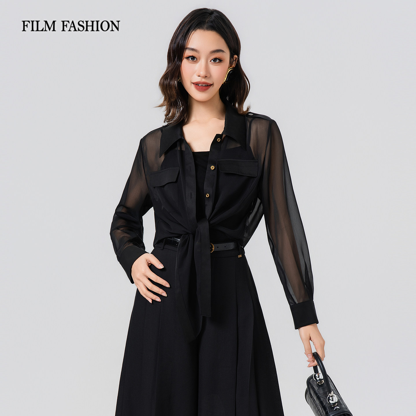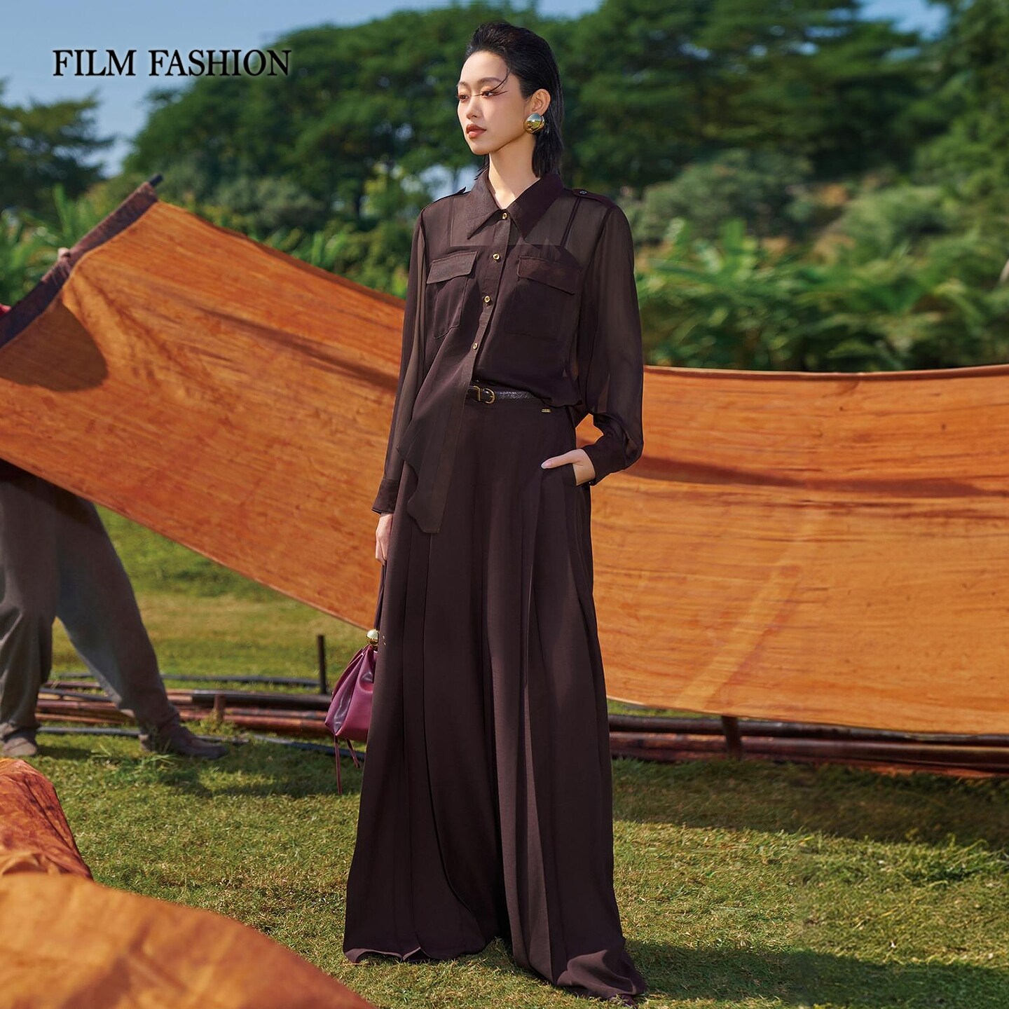两件套 一电影一时装 高级 香云纱拼接衬衣上衣休闲时尚 夏季 新款由