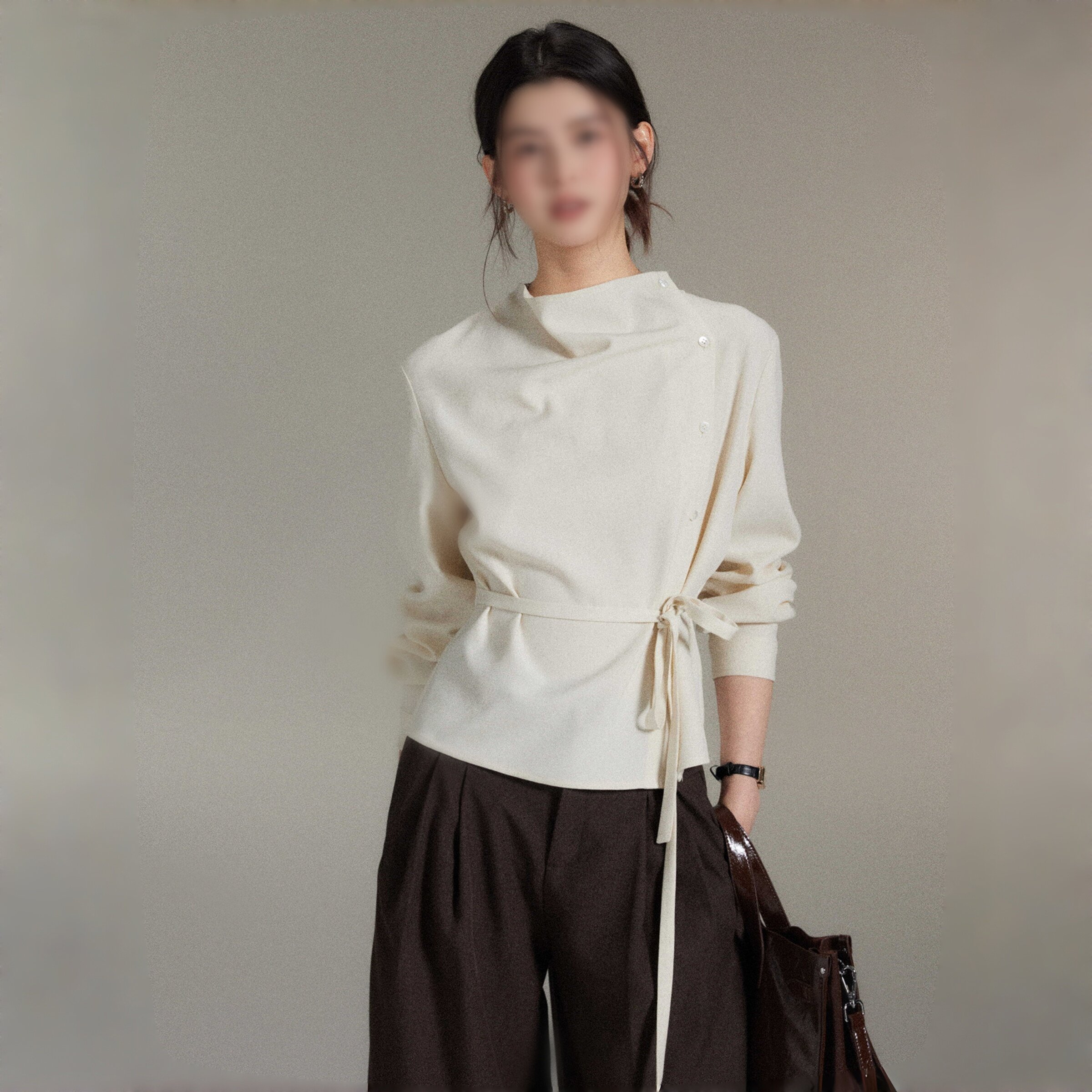 素衣彼时3776春秋女士上衣纸样不对称荡领斜门襟绑带收腰上衣样板由