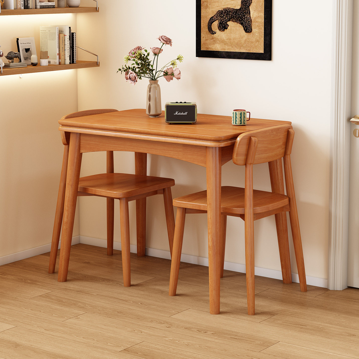 实木饭桌长方形 实木折叠餐桌家用小户型餐桌中古风餐桌椅2026新款