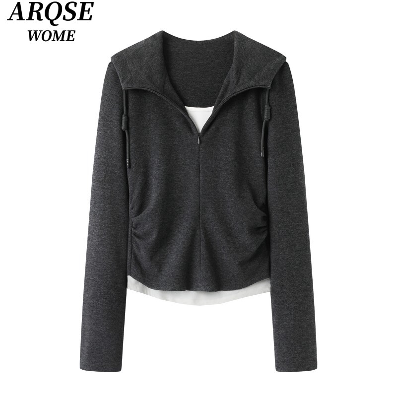 时尚 连帽双拉链软糯长袖 针织开衫 毛衣外套女春季 休闲上衣 气质帽衫