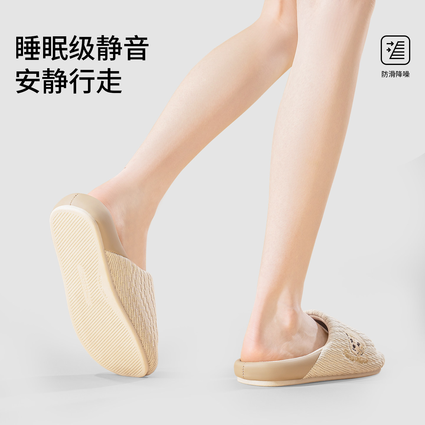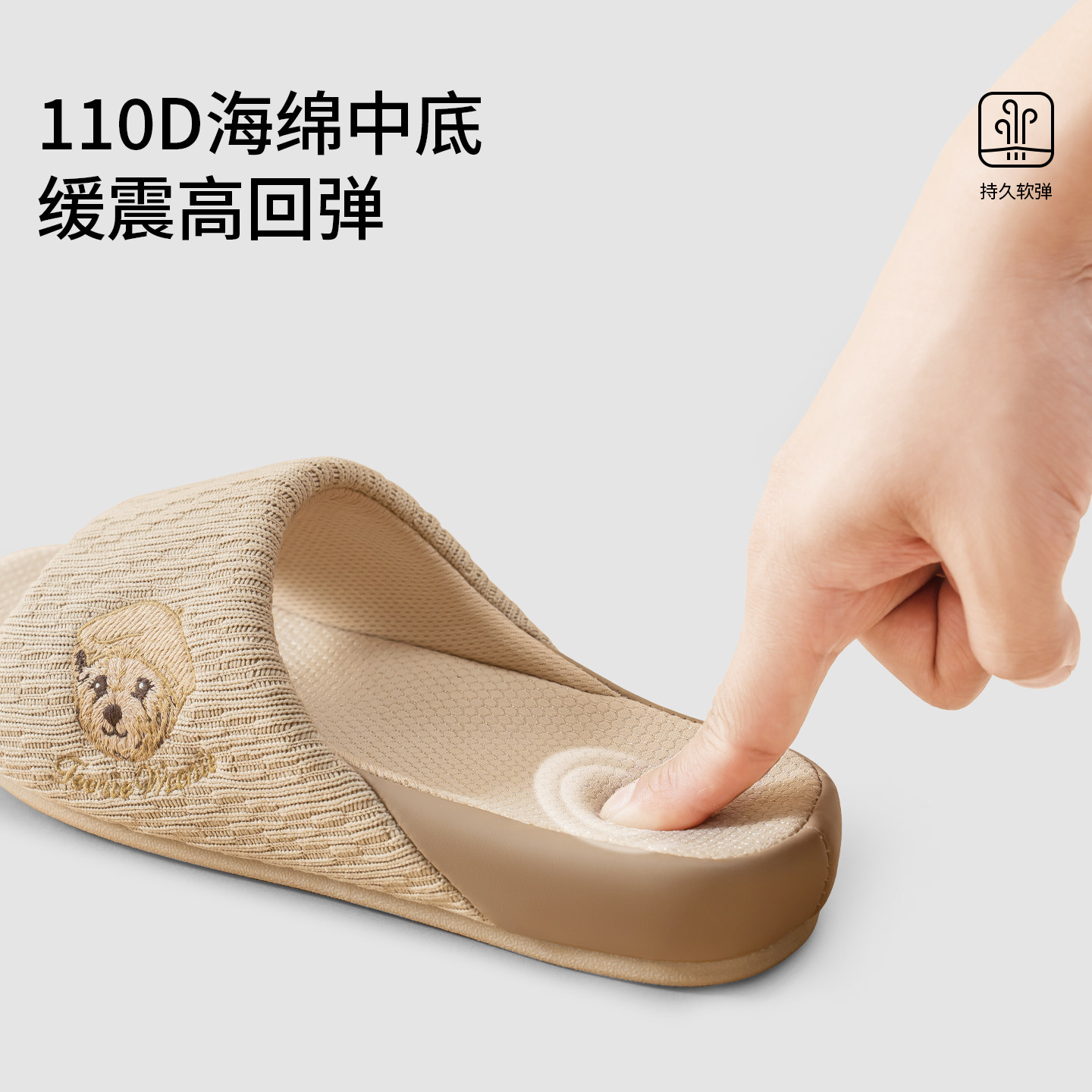 吸汗透气防滑亚麻布鞋 子 女居家室内秋季 TeenieWeenie小熊棉麻拖鞋由