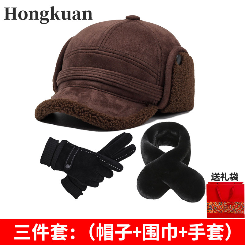 中老年人帽子男士 老人爸爸爷爷护耳保暖棒球帽加绒加厚雷锋帽 冬季