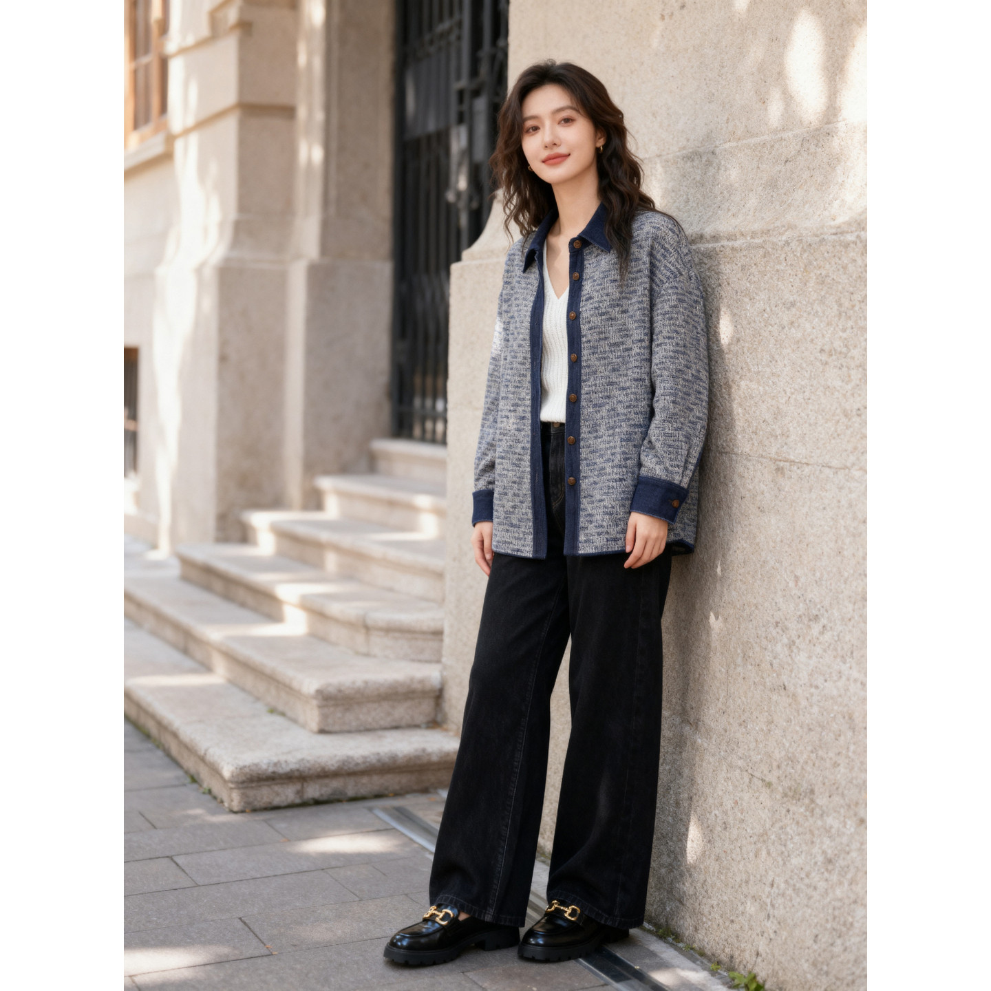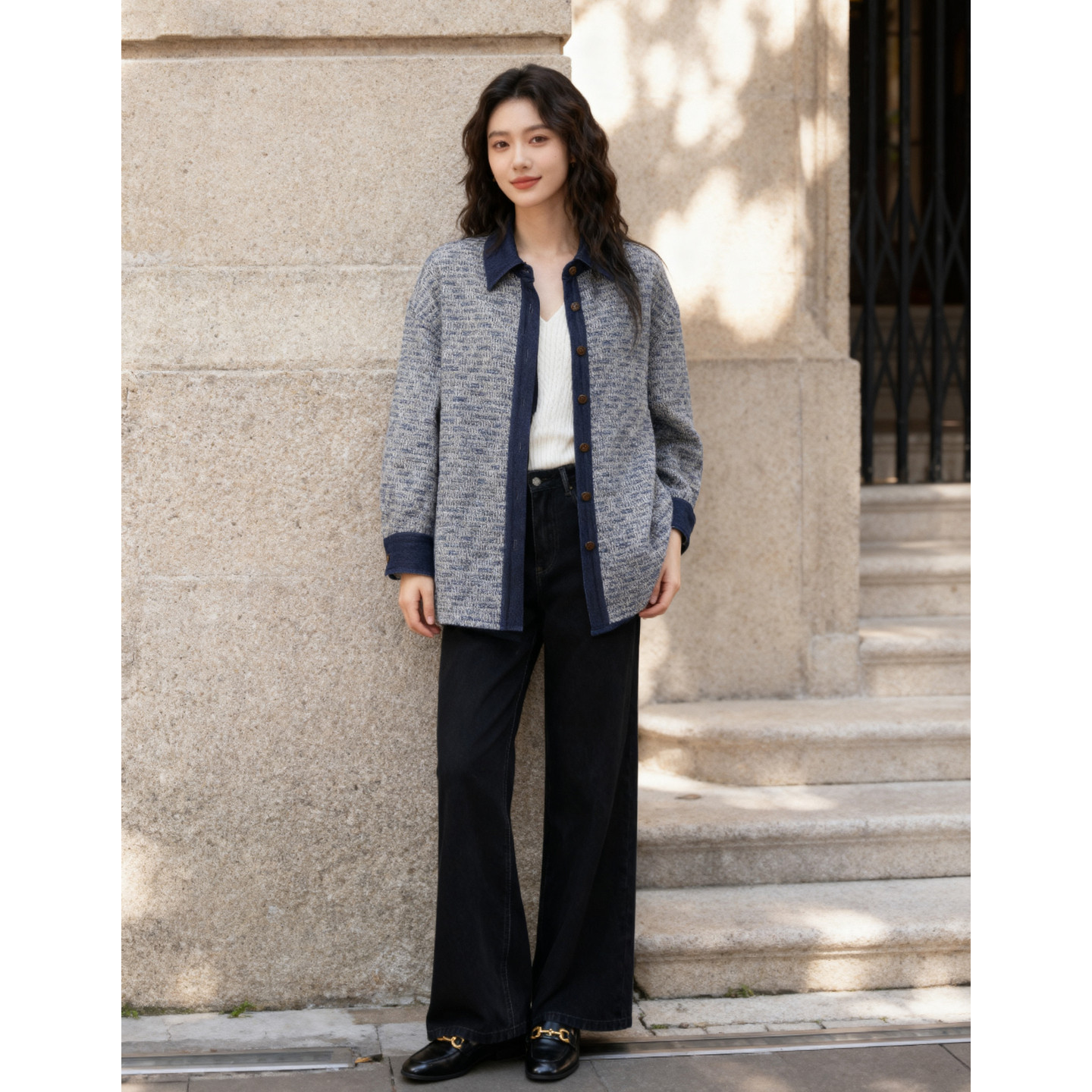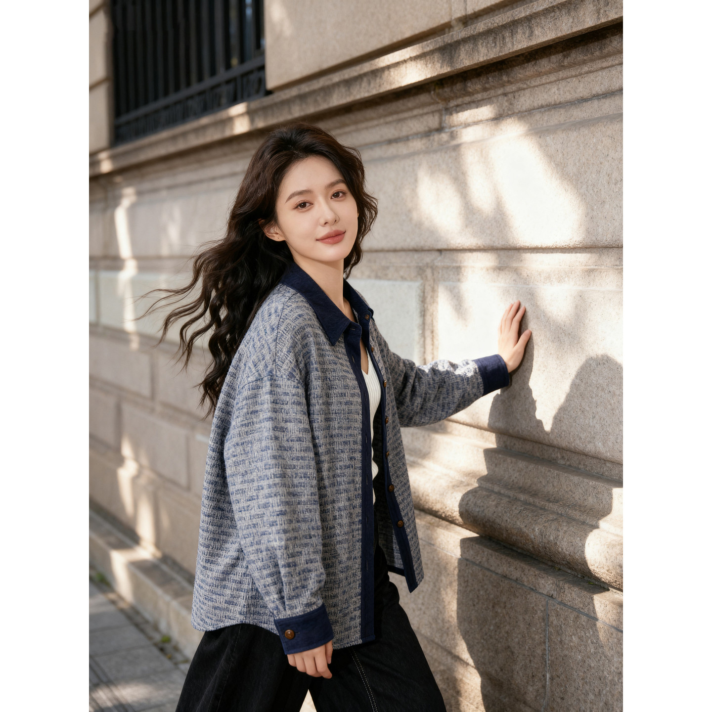 为您提供商品高级感牛仔拼接设计感2025新款 上衣 外套女秋冬季 百家好小香风衬衫的详细介绍,