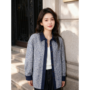 高级感牛仔拼接设计感2025新款 上衣 外套女秋冬季 百家好小香风衬衫由