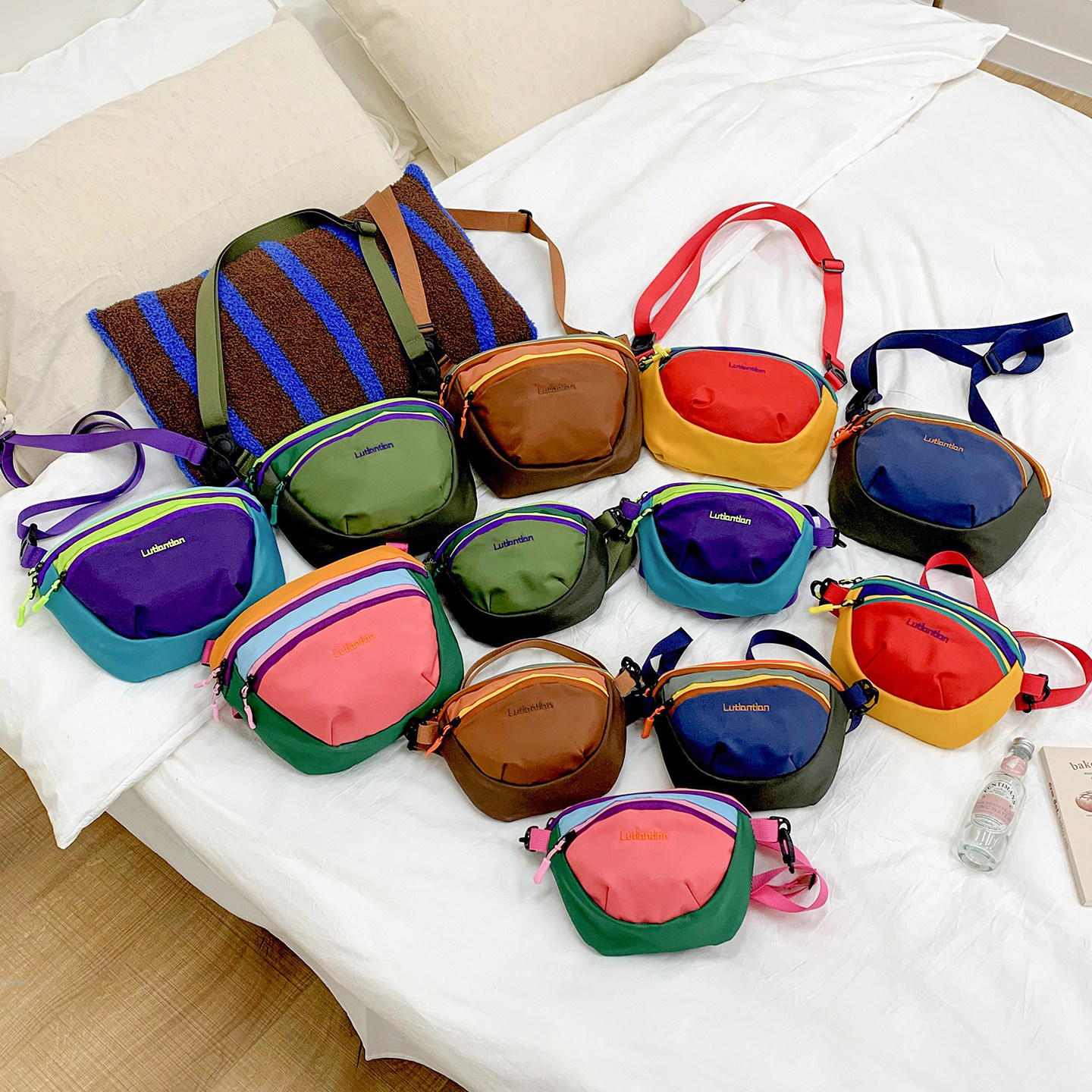 为您提供商品儿童斜挎包多巴胺拼色男女童户外便携小包男孩登山出游单肩手机包的详细介绍,