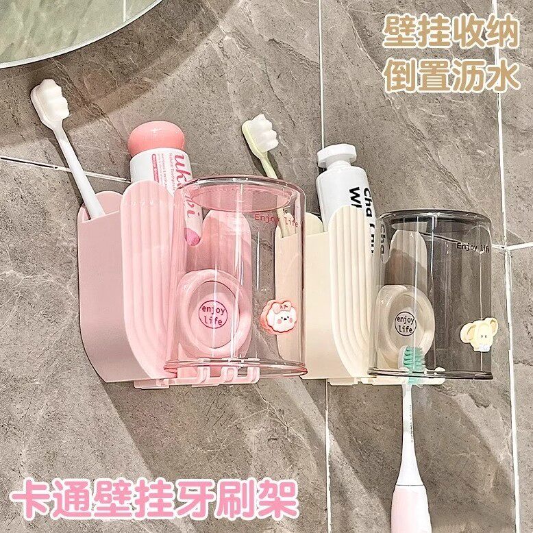 免打孔卫生间牙具座牙膏收纳浴室 牙刷牙杯壁挂置物架电动牙刷套装