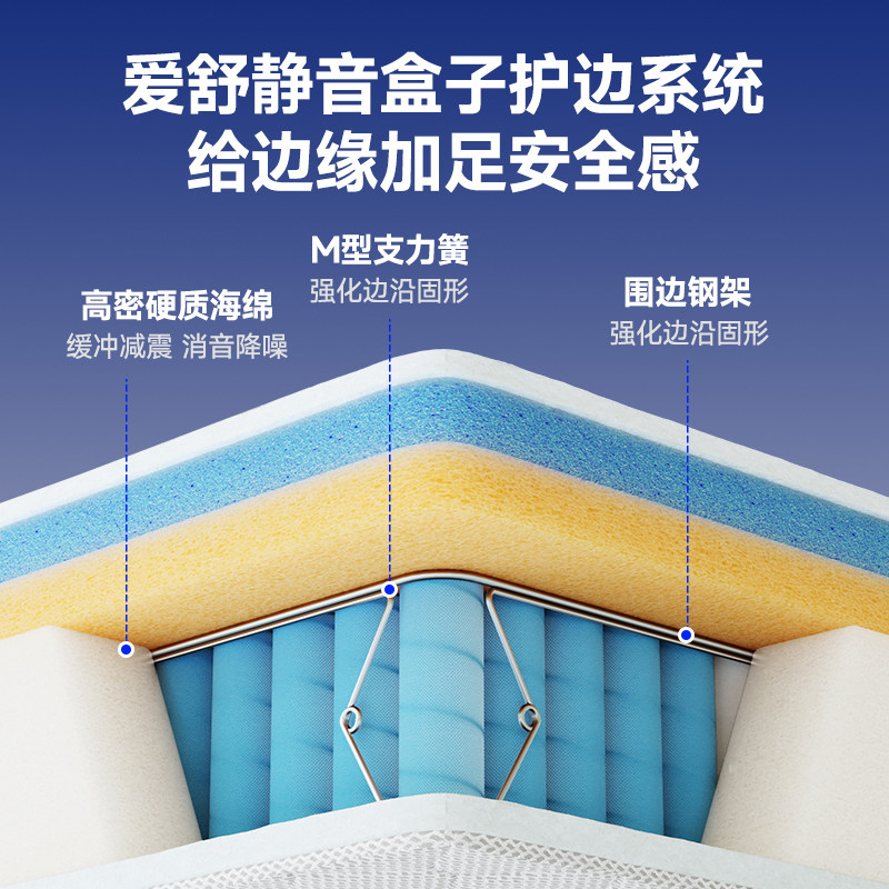 为您提供商品弹簧家用偏软护脊蚕丝绒席梦思云玺 爱舒床垫天然乳胶静音独立袋装的详细介绍,