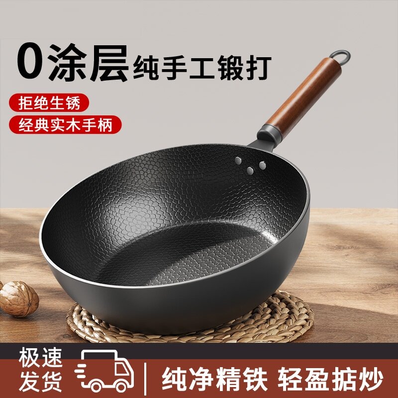 炒锅家用不粘锅无涂层燃气灶适用 章丘炒菜锅传统铁锅官方旗舰老式