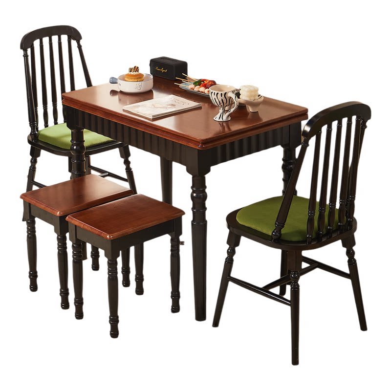 实木饭桌长方形 实木折叠餐桌家用小户型餐桌中古风餐桌椅2026新款
