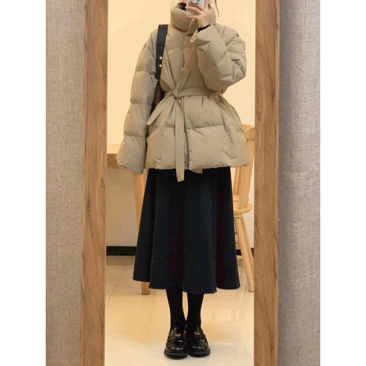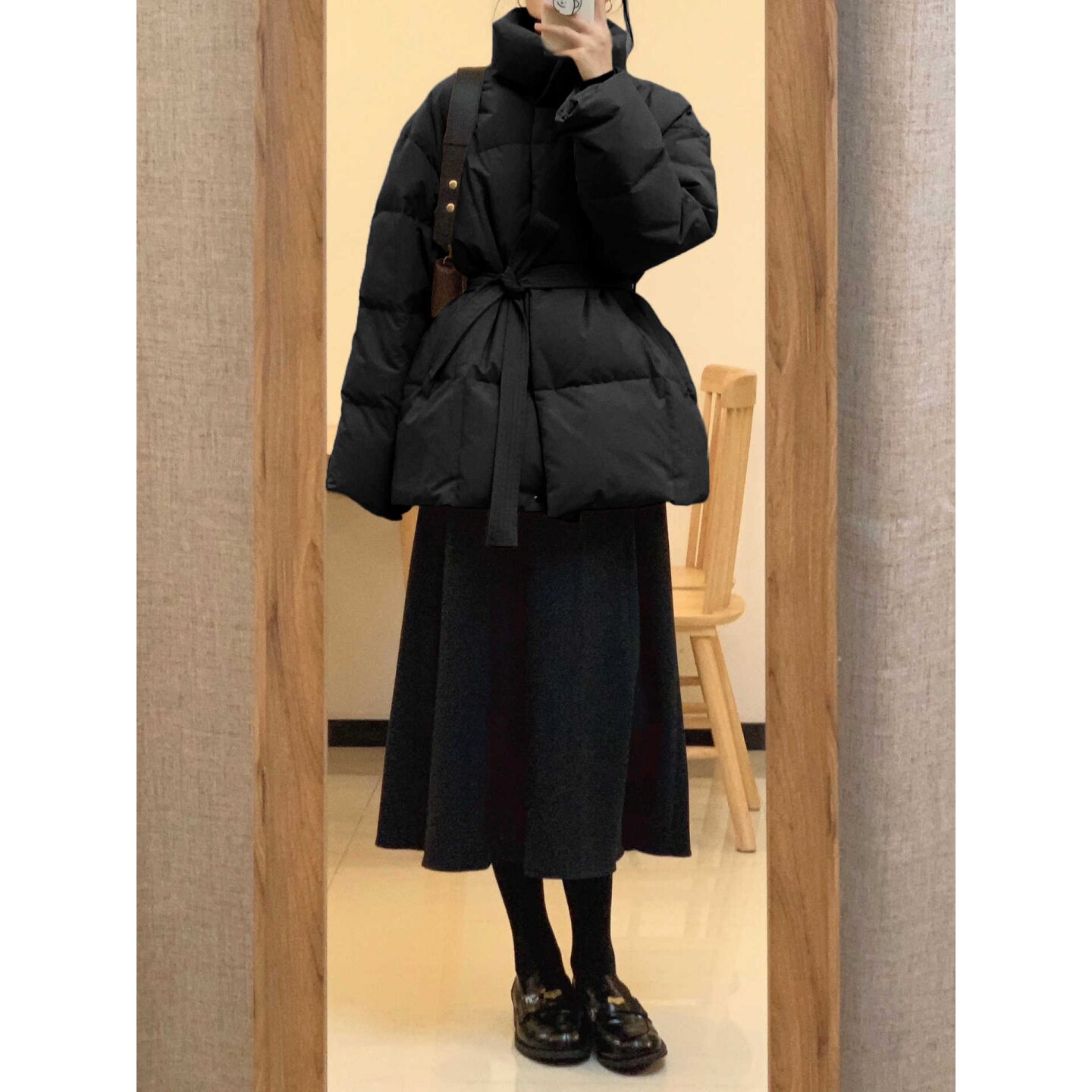 大码 复古风系带收腰棉衣棉服女冬季 新款 百搭加厚保暖外套 胖mm美式