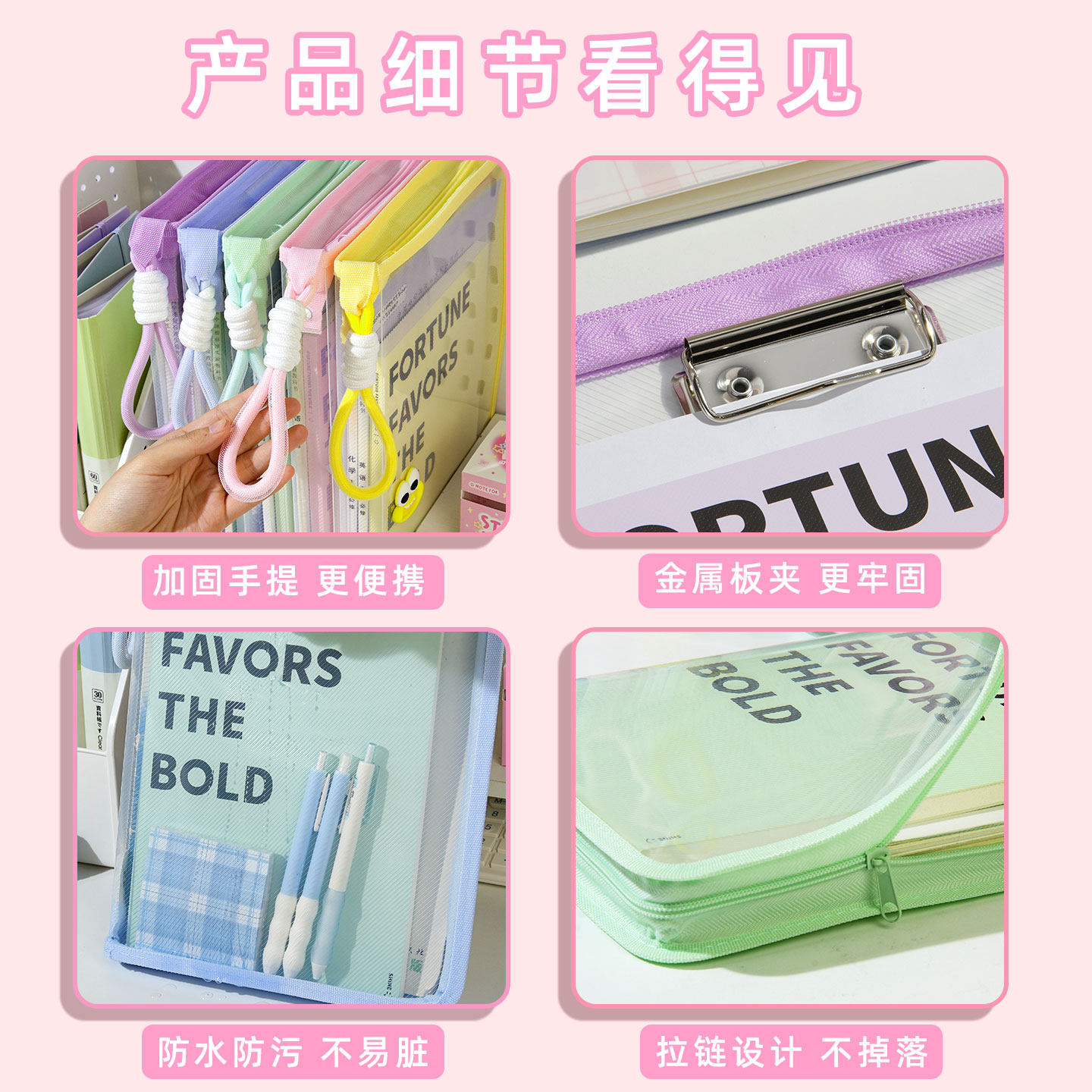 为您提供商品可手提 收纳袋小学生拎书补习袋试卷袋高颜值初中生专用科目分类袋大容量作业袋A4文件夹 文件袋透明拉链式的详细介绍,