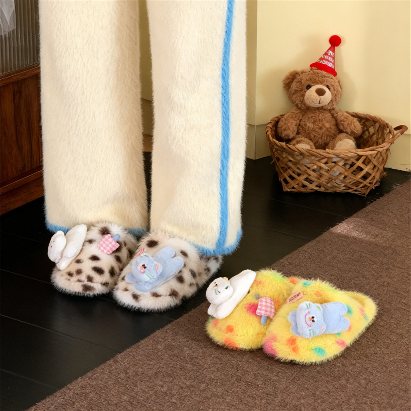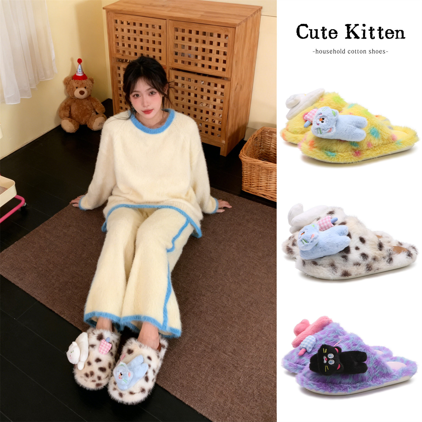 为您提供商品家居毛毛鞋 细细条 个性 小猫2025新款 女冬防滑保暖软底趣味棉拖鞋的详细介绍,
