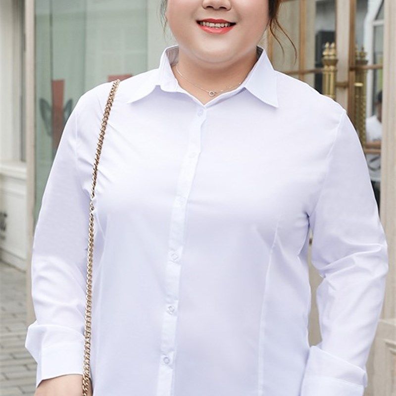 职业V领短袖 工装 微弹兰正装 加宽 女纯白长袖 加大码 衬衫 特胖m春夏款由