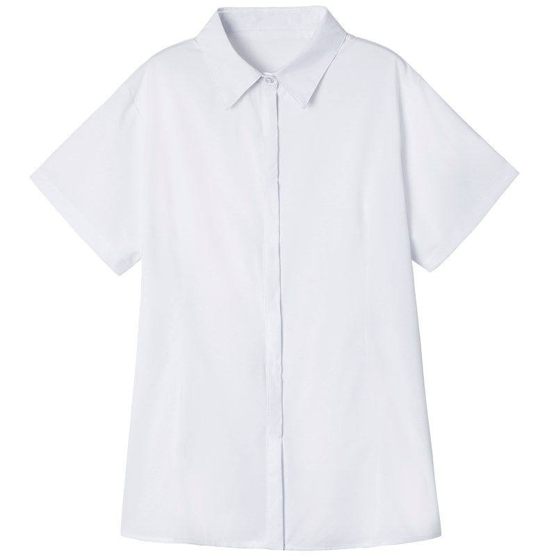 职业V领短袖 工装 微弹兰正装 加宽 女纯白长袖 加大码 衬衫 特胖m春夏款