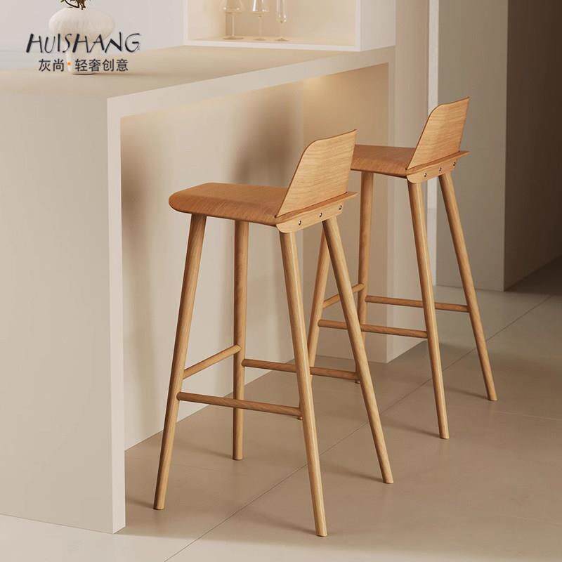 椅子 现代简约实木吧椅吧凳吧台椅酒吧椅高脚凳梯凳家用奶茶店欧式