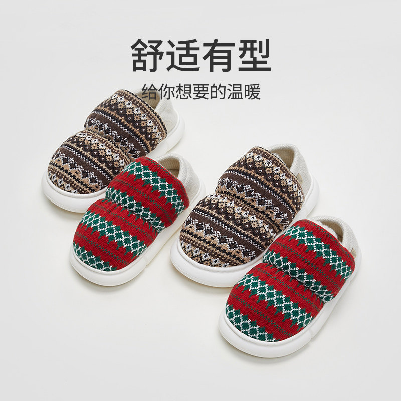 极速优调面包棉拖鞋 毛线针织厚底家居室内W毛绒保暖月 包跟女冬季