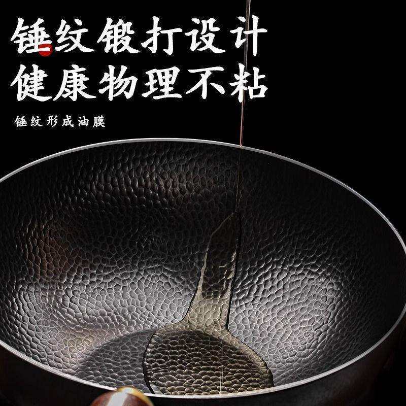为您提供商品手工锻打铁锅平底煎炒锅大容量无涂层不粘锅家用锤纹炒锅的详细介绍,