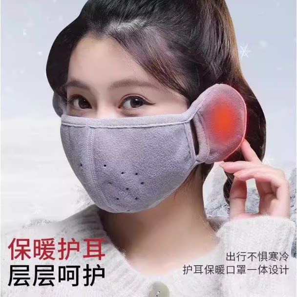 耳朵保暖口罩女防风护耳一体骑车毛绒加厚防冻防寒耳套二合一 冬季