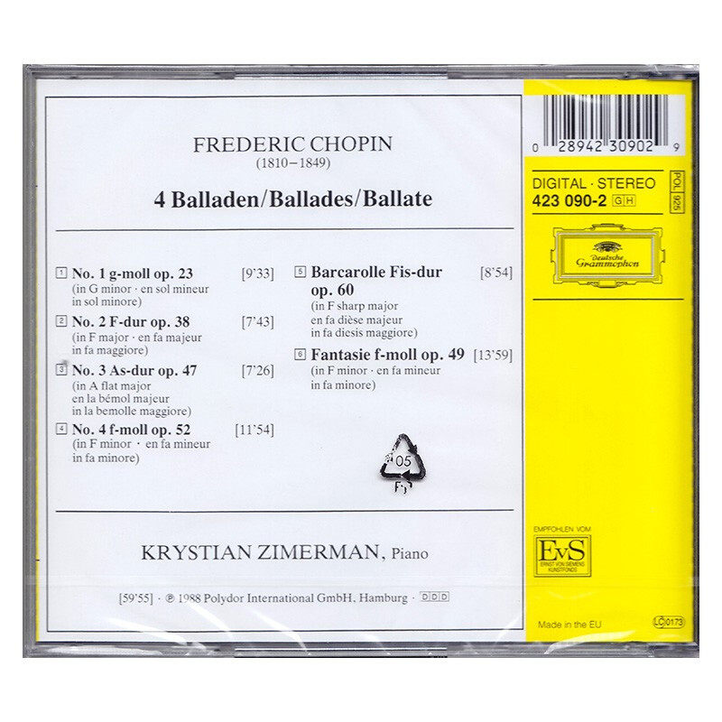 CD唱片 古典音乐 齐默尔曼 肖邦4首民谣 自营 正版由