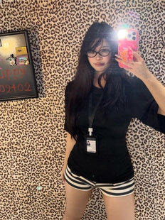 女收腰显瘦 黑白工牌名牌姐姐辣妹OL风弹力单肩一字肩圆领短袖由