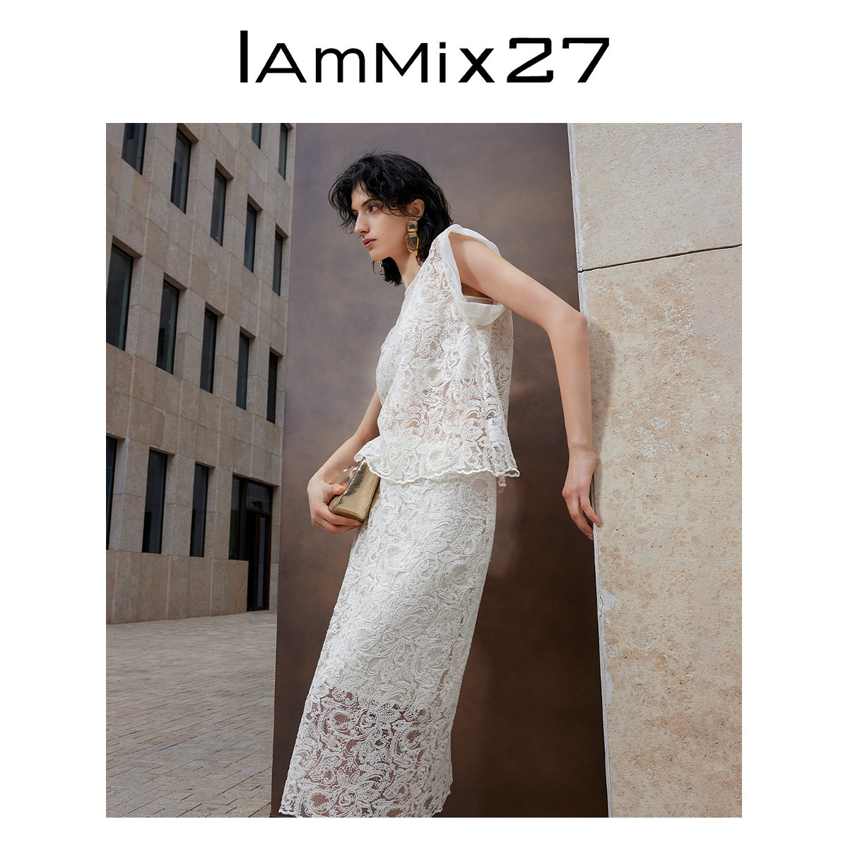 为您提供商品IAmMIX27时尚 女简约压褶盖肩上衣百搭吊带蕾丝半身裙三件套女 套装的详细介绍,