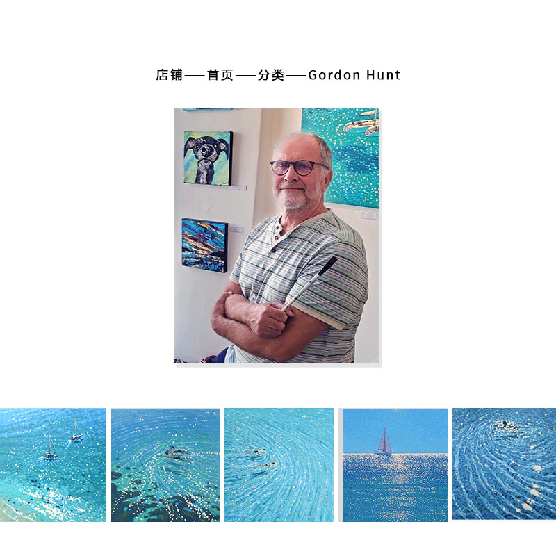 Hunt 海洋风景插画蓝色系治愈船帆艺术复刻装 饰挂画芯 Gordon由