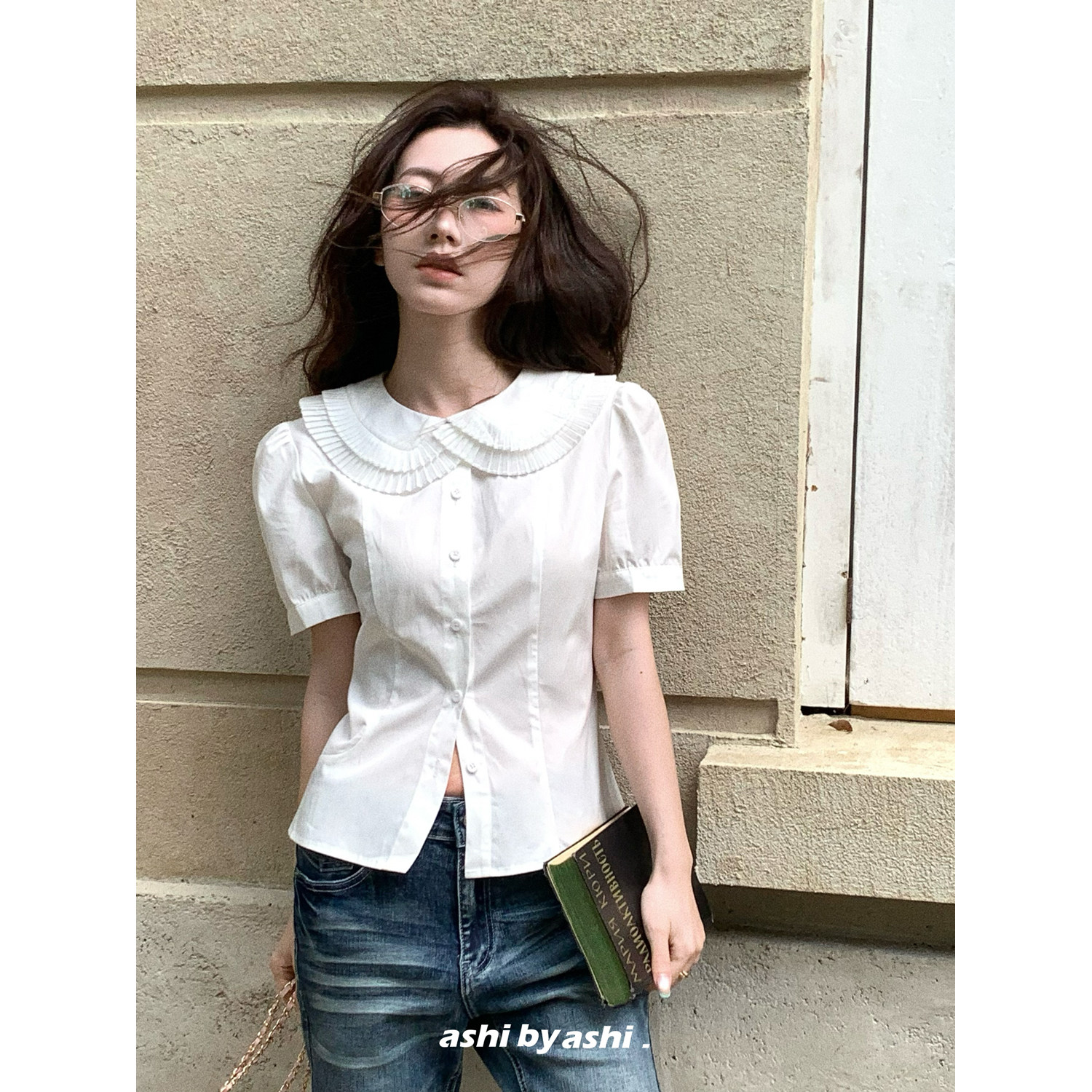 21点前七折 07新品 天丝棉减龄风琴褶娃娃领白衬衫 佩里月光由