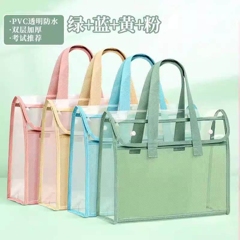 加厚手提袋文件袋A4透明防水耐用学生考试补习试卷作业书本收纳袋