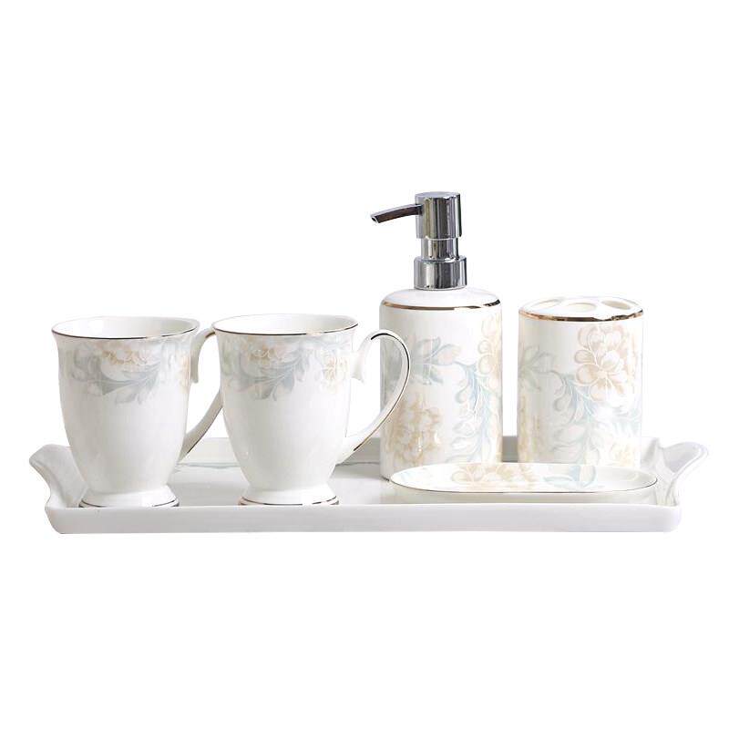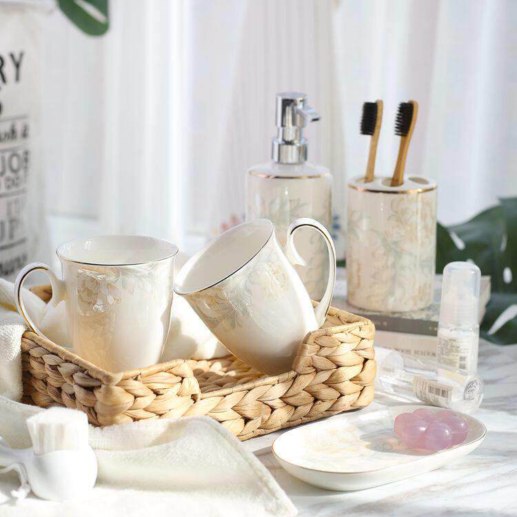 为您提供商品奢华骨瓷牙具化妆室陶瓷漱口杯牙刷架按压洗手液瓶漱口杯散件 时尚的详细介绍,