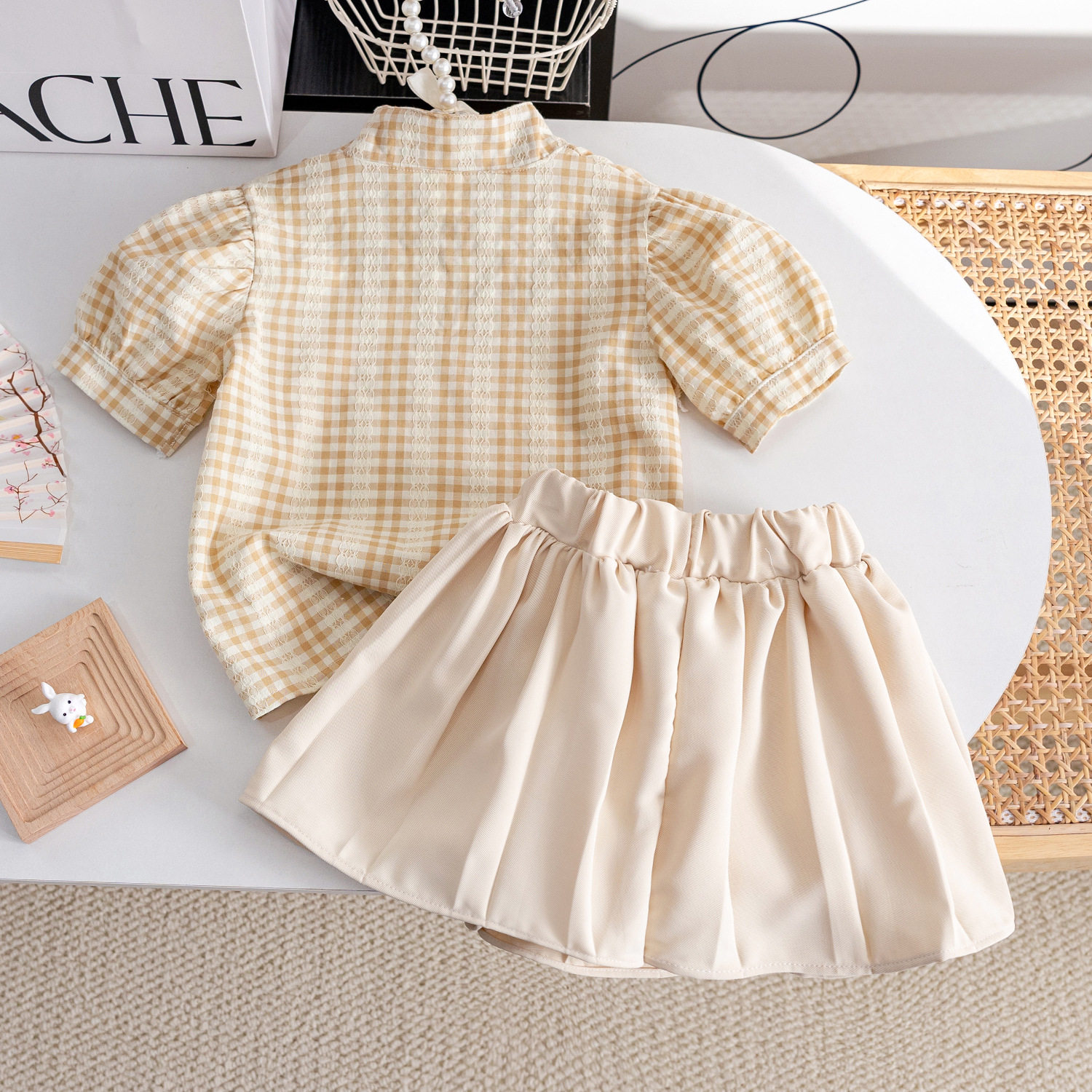 女童夏季 2024中国风新款 学院风蝴蝶结衬衫 裙子古风洋气两件套 套装由