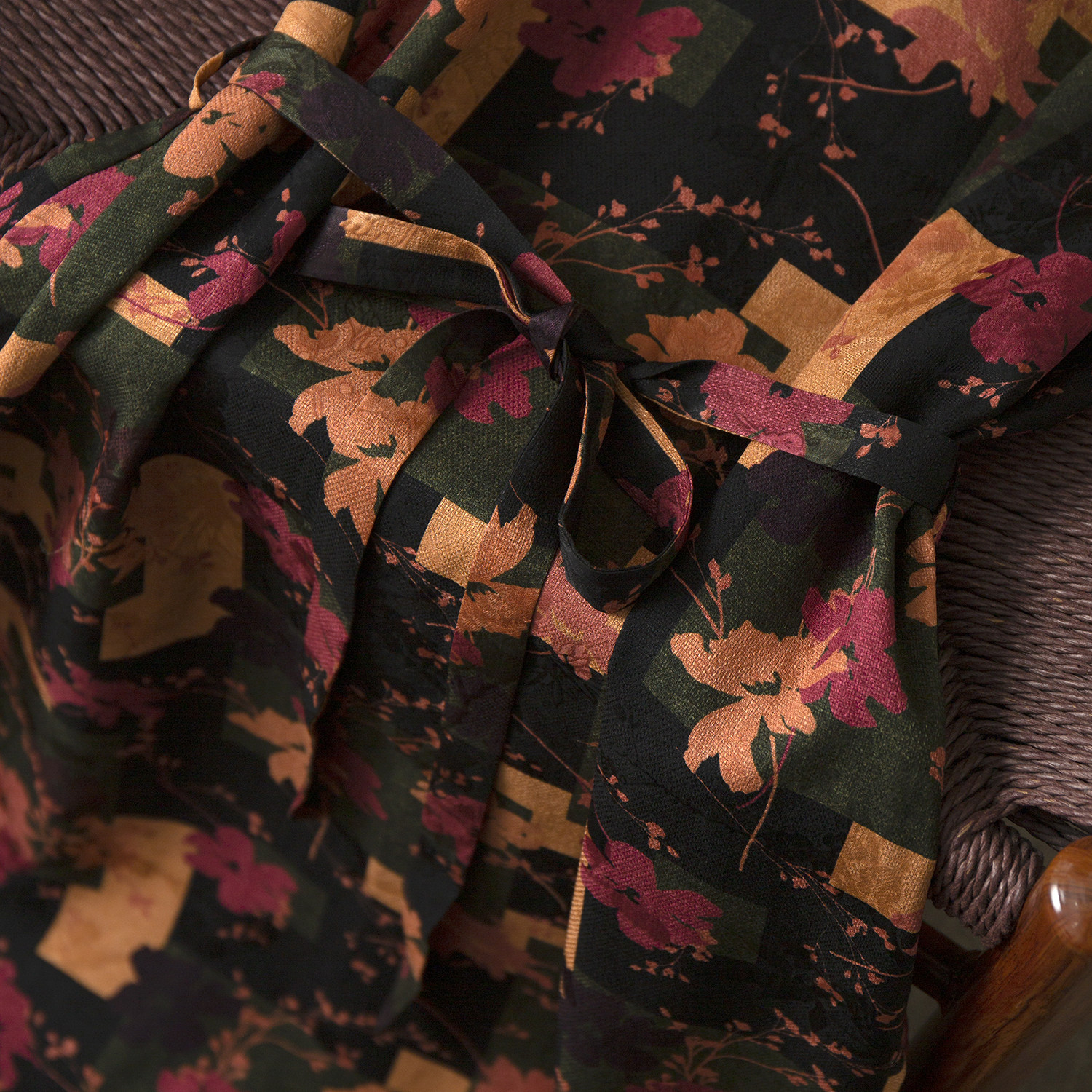 真丝香云纱花萝收腰系带连衣裙 4.4新品由