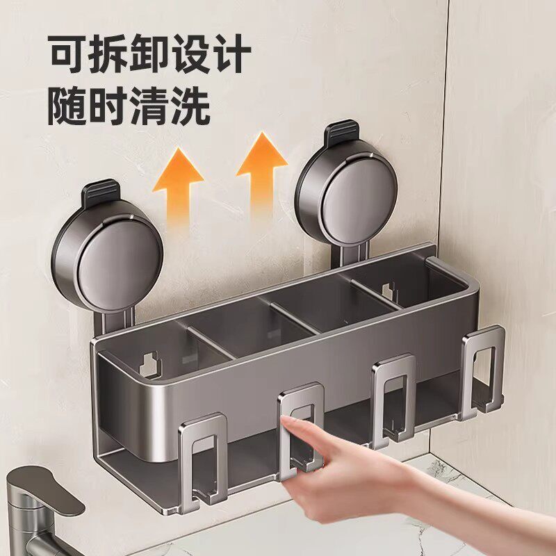 免打孔卫生间管道清洁棒 吸盘牙刷置物架漱口杯电动牙刷杯架壁挂式