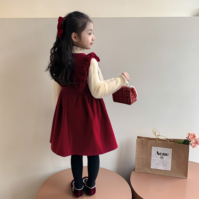 洋派女孩公主裙冬装 加绒裙子两件套拜年服 2023新款 女童秋冬洋装由
