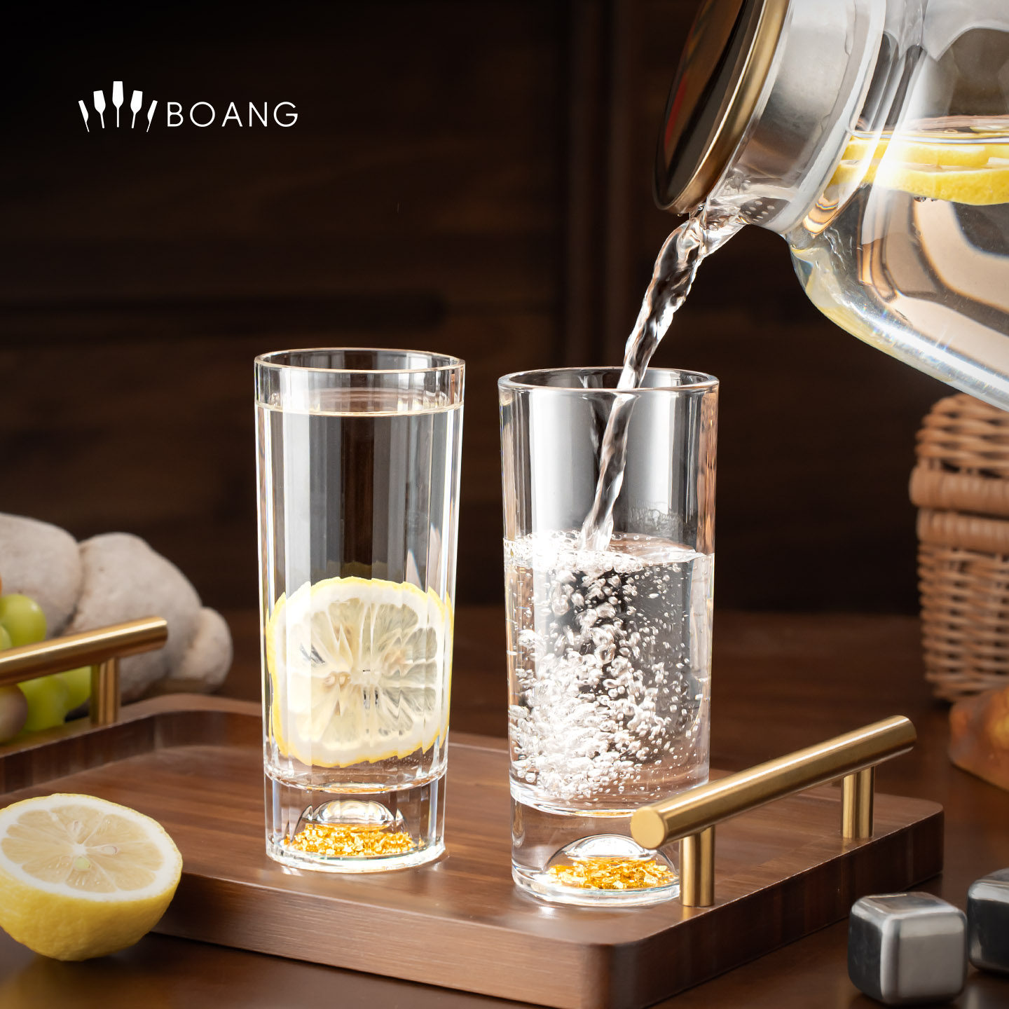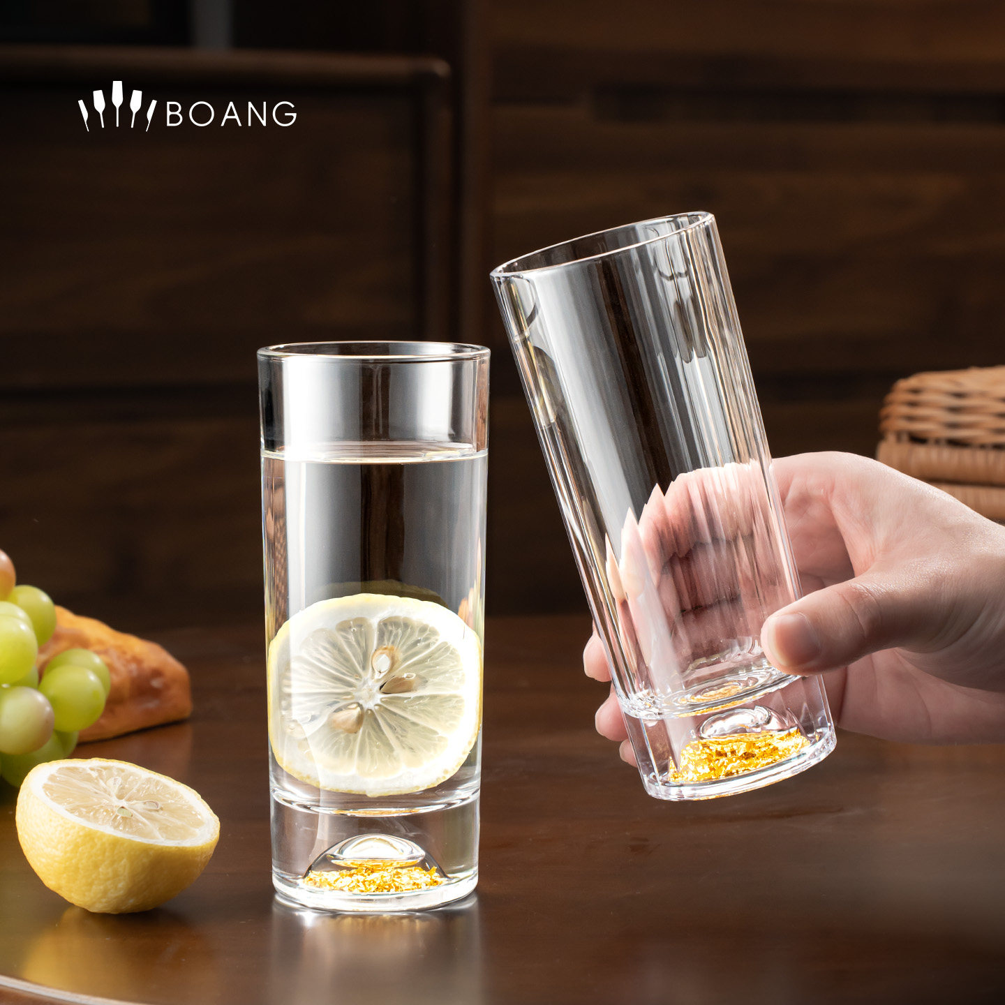 家用加厚喝水杯客厅手泡茶杯待客水具 BOANG轻奢金箔玻璃杯套装由
