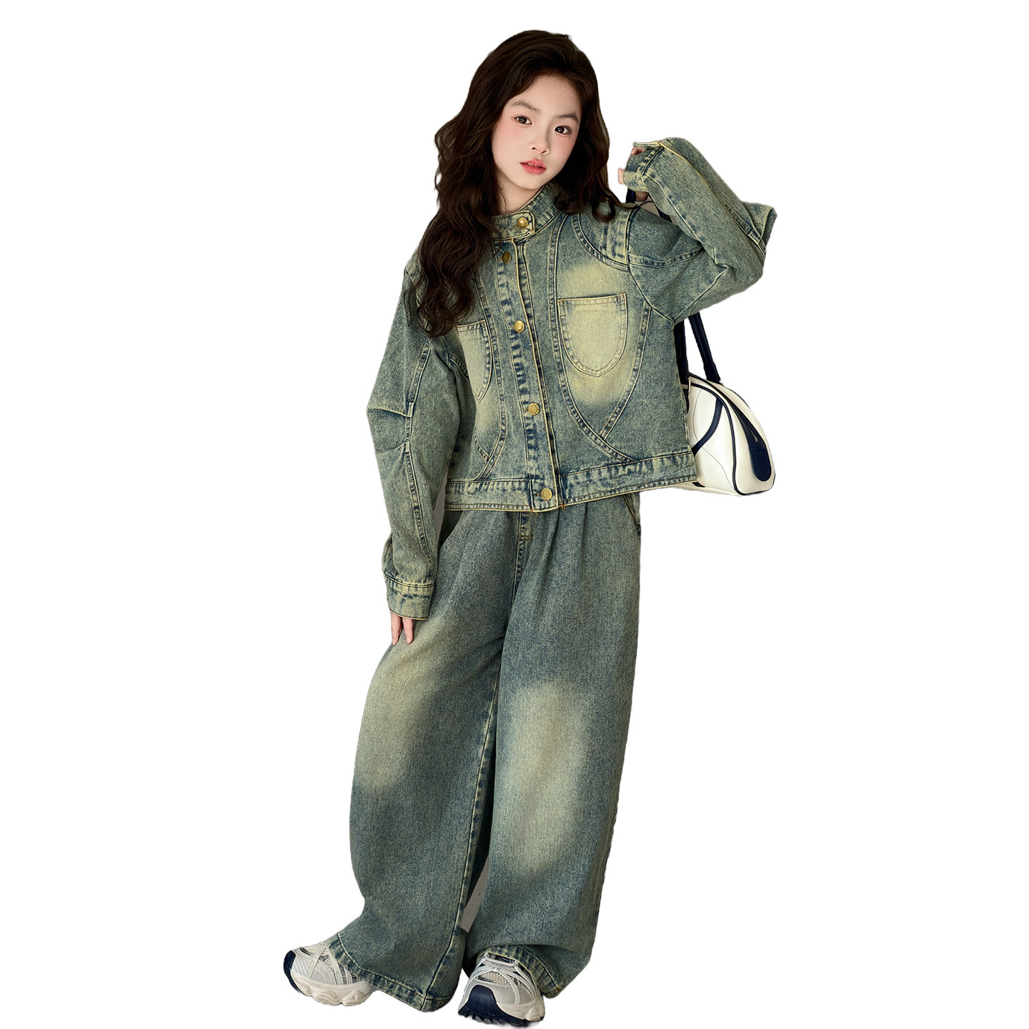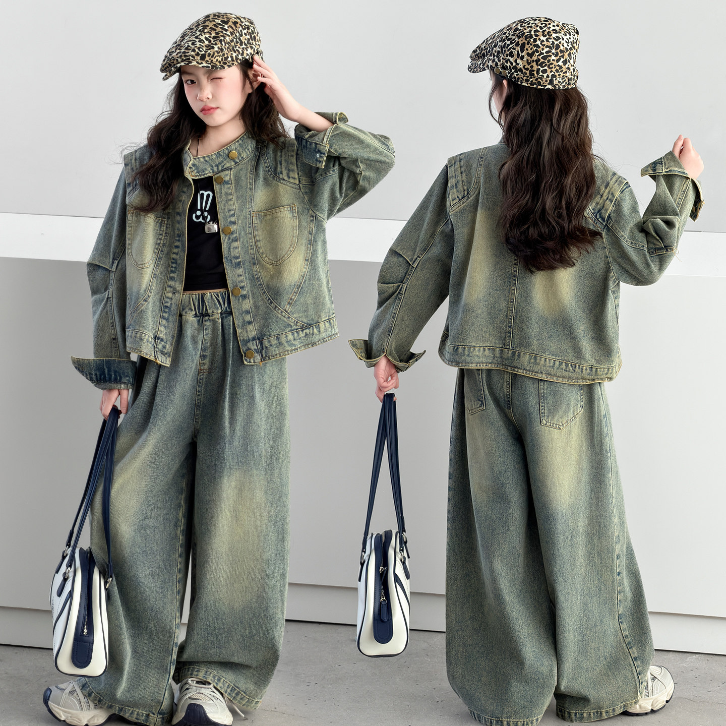 2026春秋新款 中大童洋气潮流百搭韩系牛仔两件套 牛仔套装 女童春季
