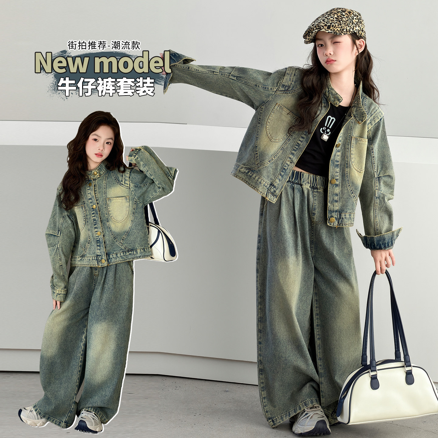 2026春秋新款 中大童洋气潮流百搭韩系牛仔两件套 牛仔套装 女童春季由