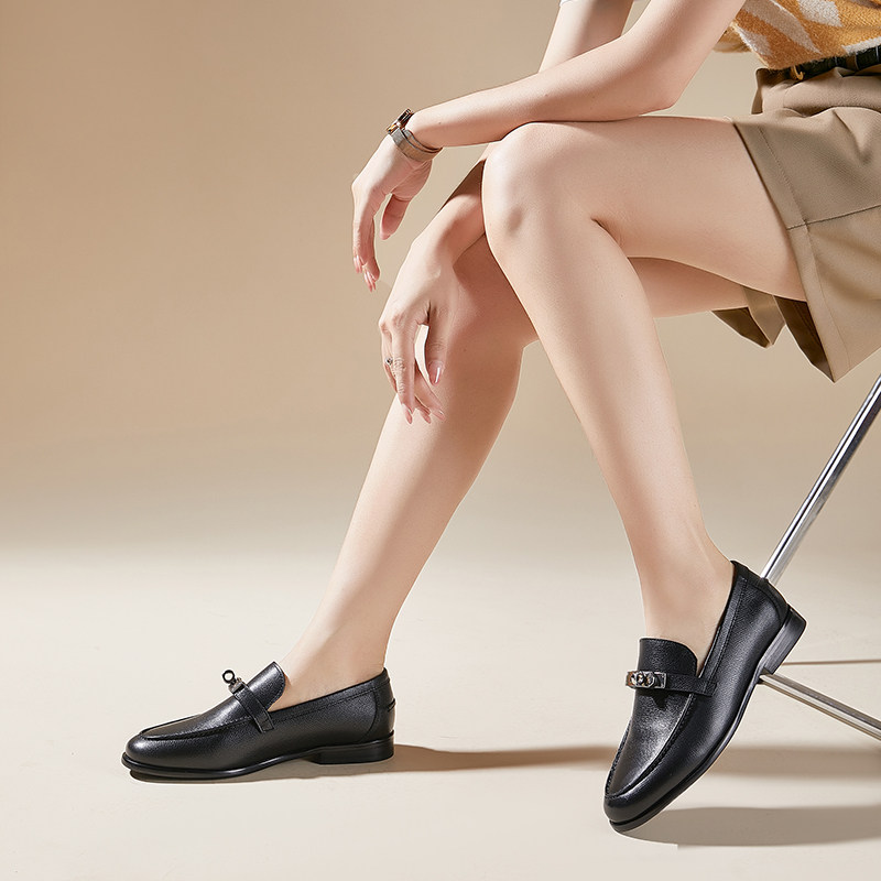低跟豆豆妈妈小皮鞋 达芙妮乐福鞋 平底女鞋 真皮单鞋 女2026新款 夏季