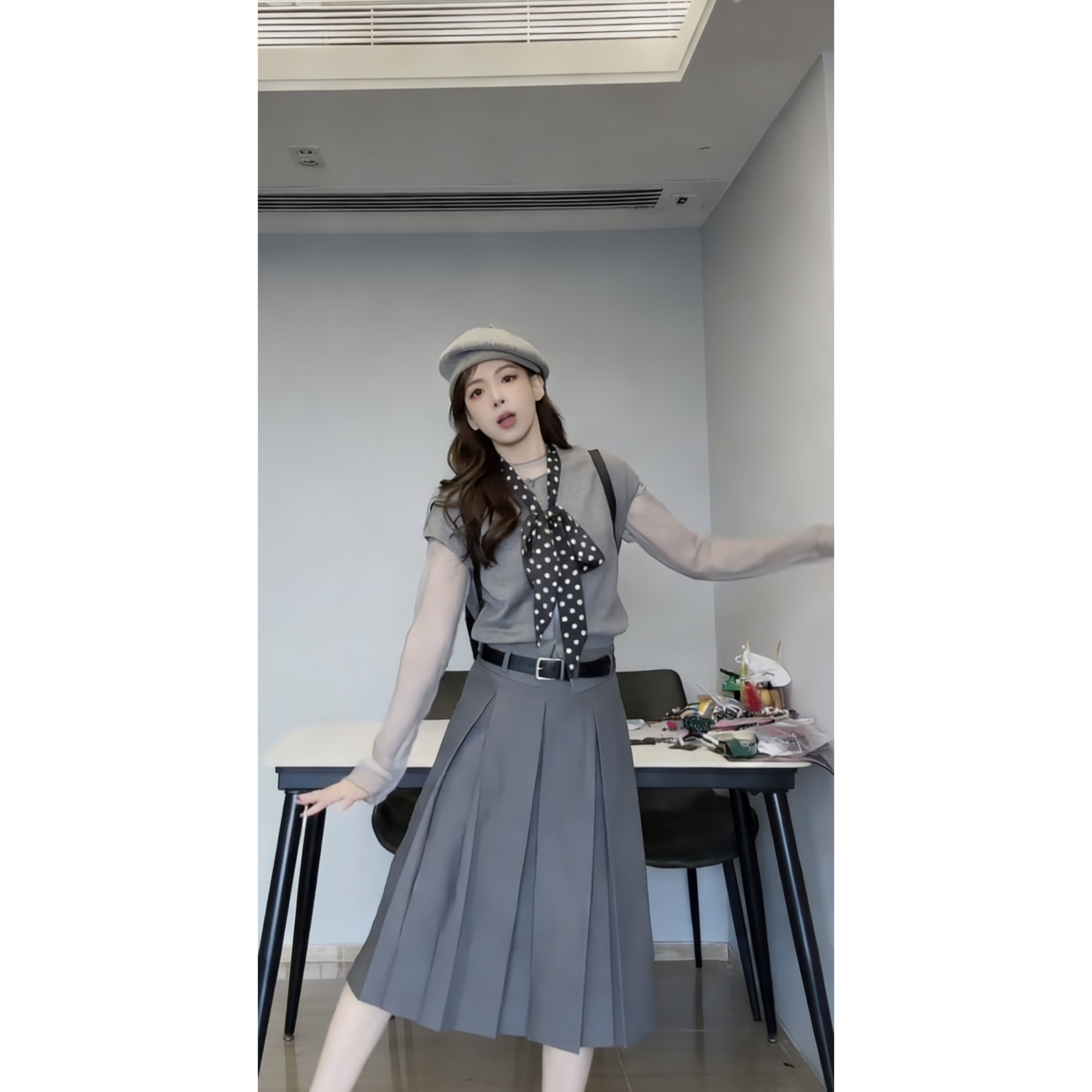 为您提供商品半身裙女2026春夏新款 百褶裙 T4616知识分子风气质烟灰色中长裙的详细介绍,