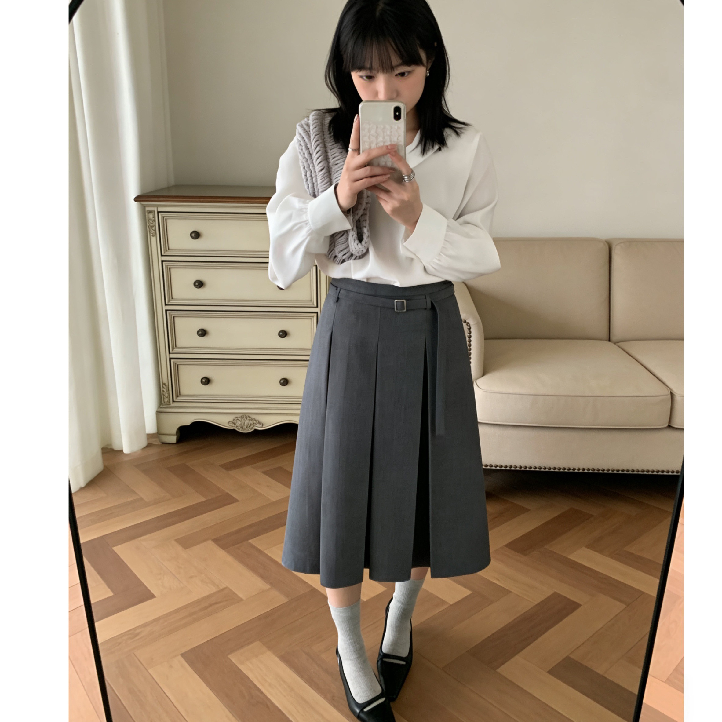 半身裙女2026春夏新款 百褶裙 T4616知识分子风气质烟灰色中长裙