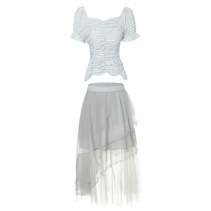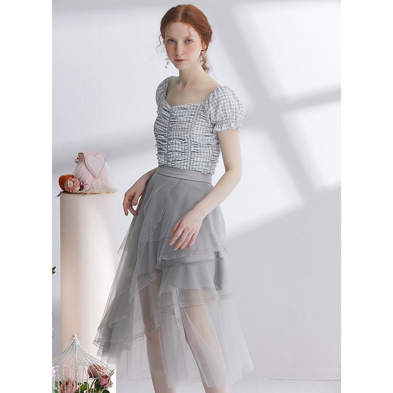 复古宫廷风网纱半身裙时尚 艾丽丝2021夏季 新款 女装 裙两件套潮 套装由