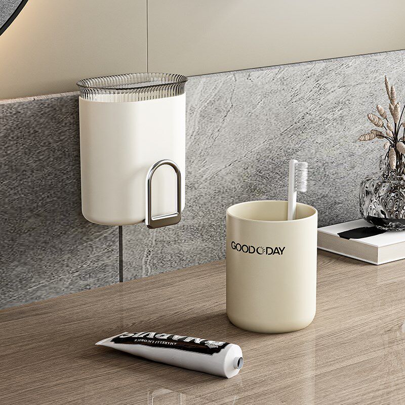 2023牙刷置物架免打孔壁挂式 漱口牙膏电动牙具架子洗漱刷牙杯套装由