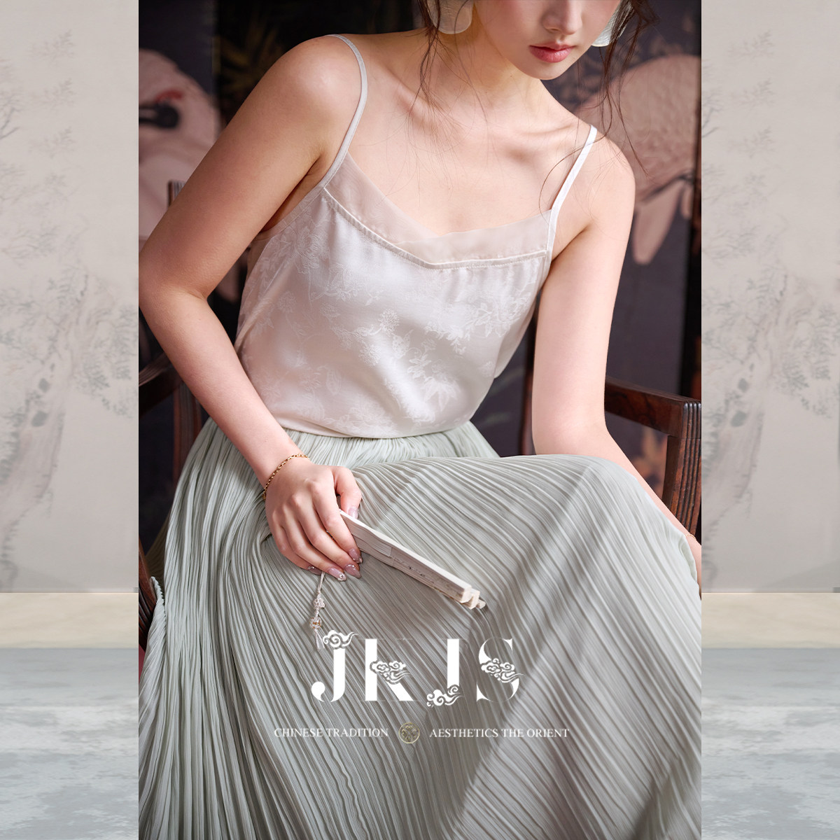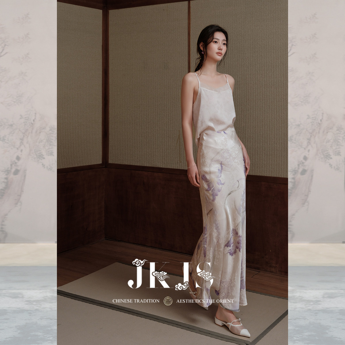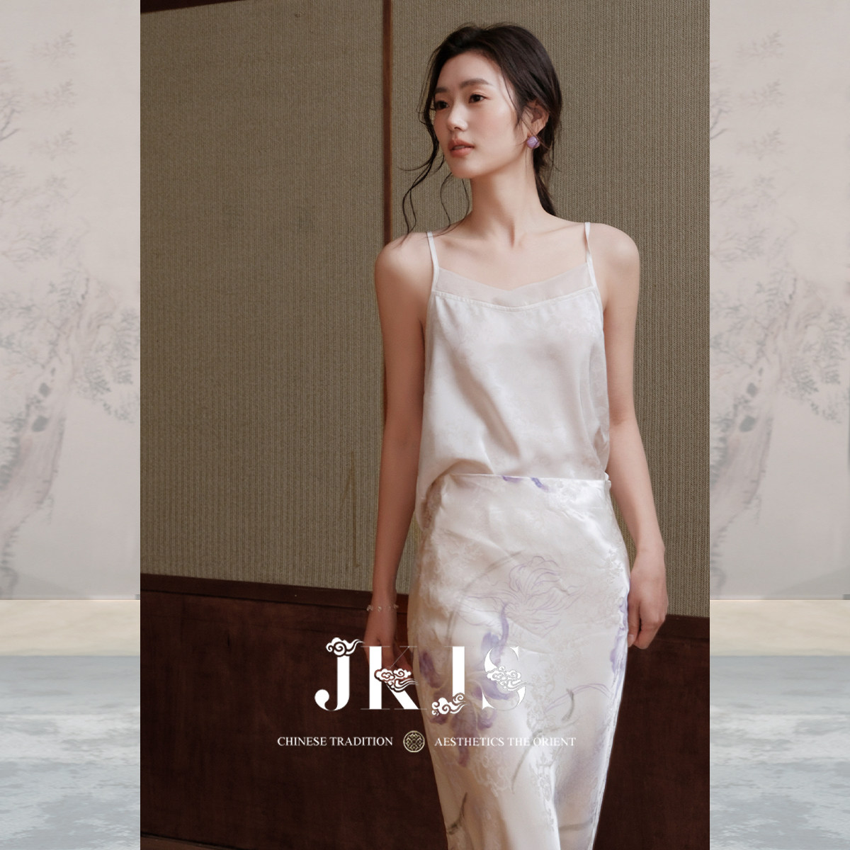 款 JKJS 夏栀 白色吊带背心缎面提花内搭女上衣夏季 日常穿搭 时尚