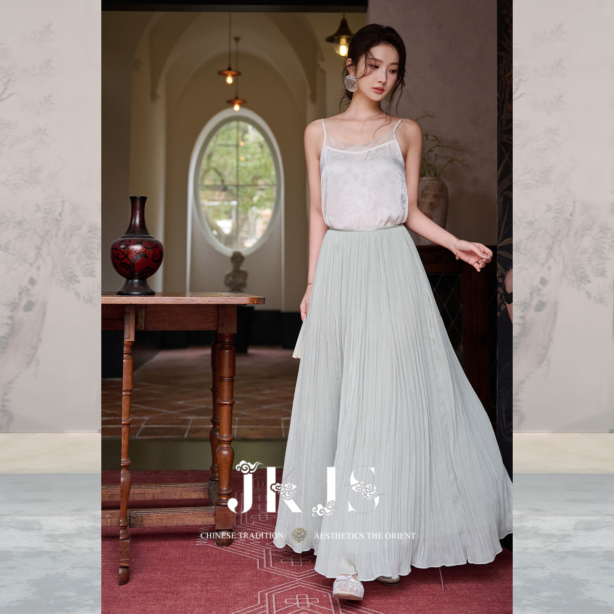 为您提供商品款 JKJS 夏栀 白色吊带背心缎面提花内搭女上衣夏季 日常穿搭 时尚的详细介绍,