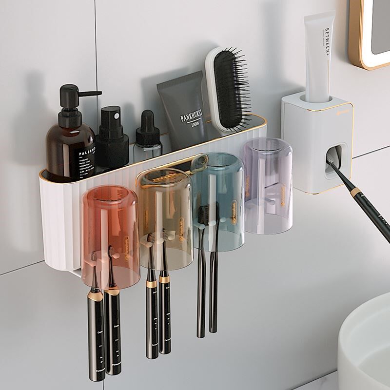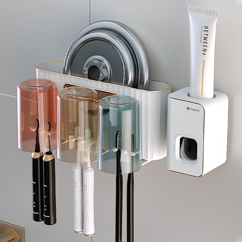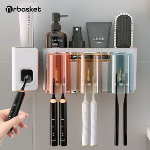 新款 牙刷架家庭免打牙杯架子漱 牙刷壁挂式