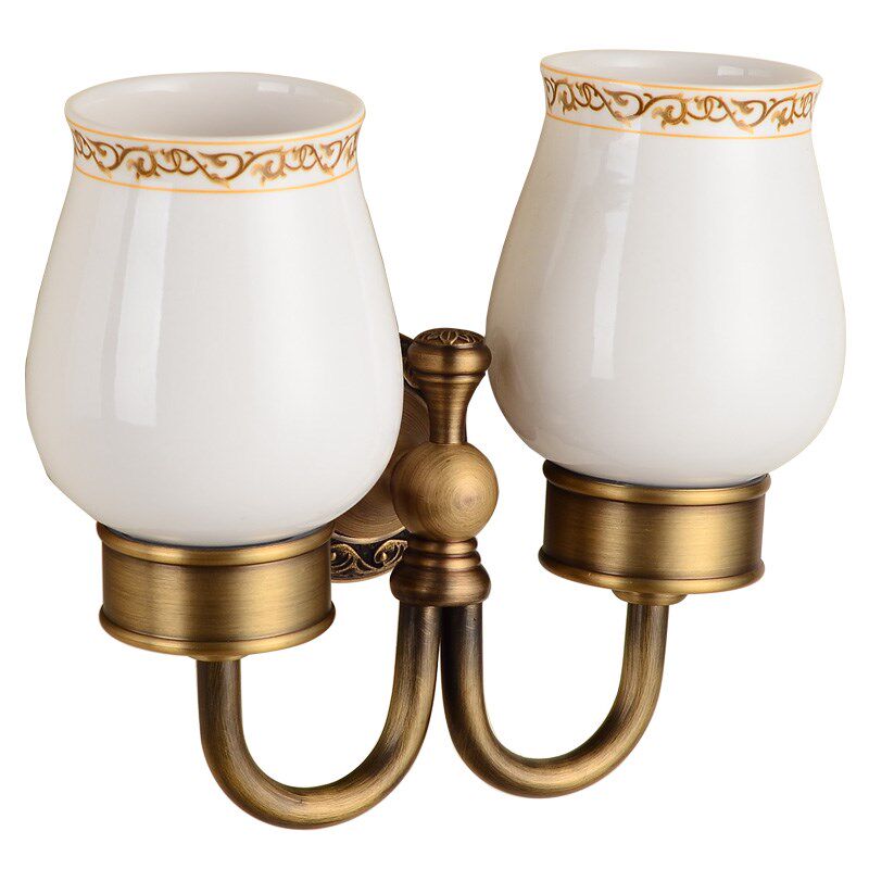 仿古牙刷杯架漱口杯欧式 铜 陶瓷漱口杯复古刷牙杯卫生间牙缸杯套装由
