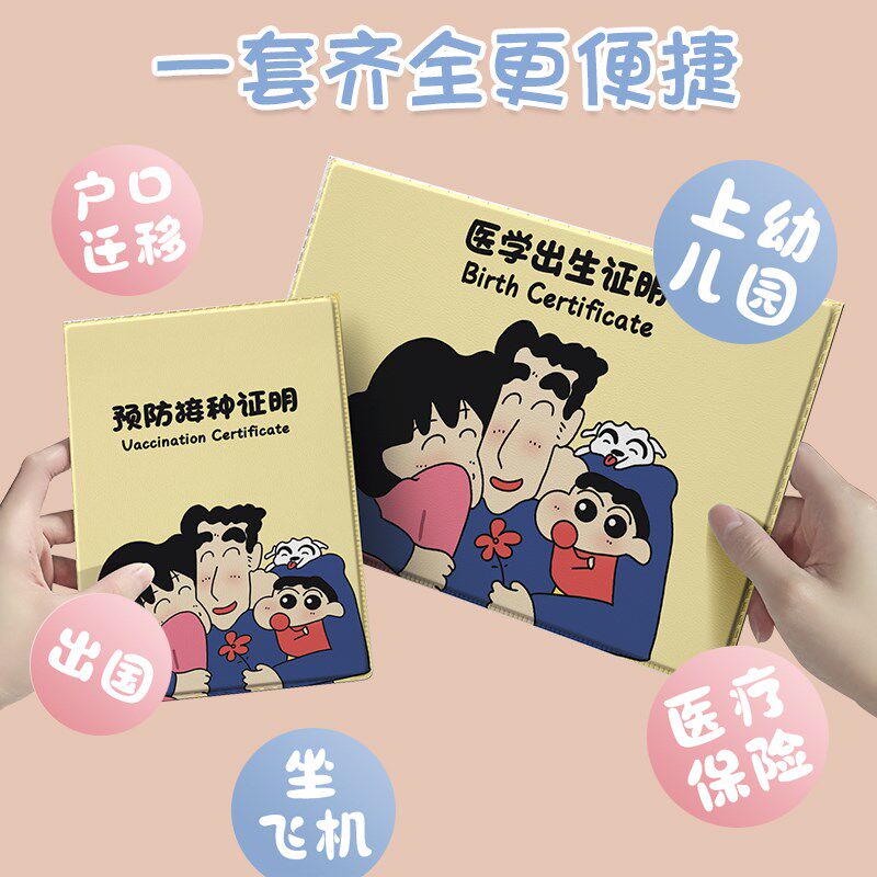 可放两张不粘字收纳本 出生证明和疫苗本保护套2024可爱一家人新版由